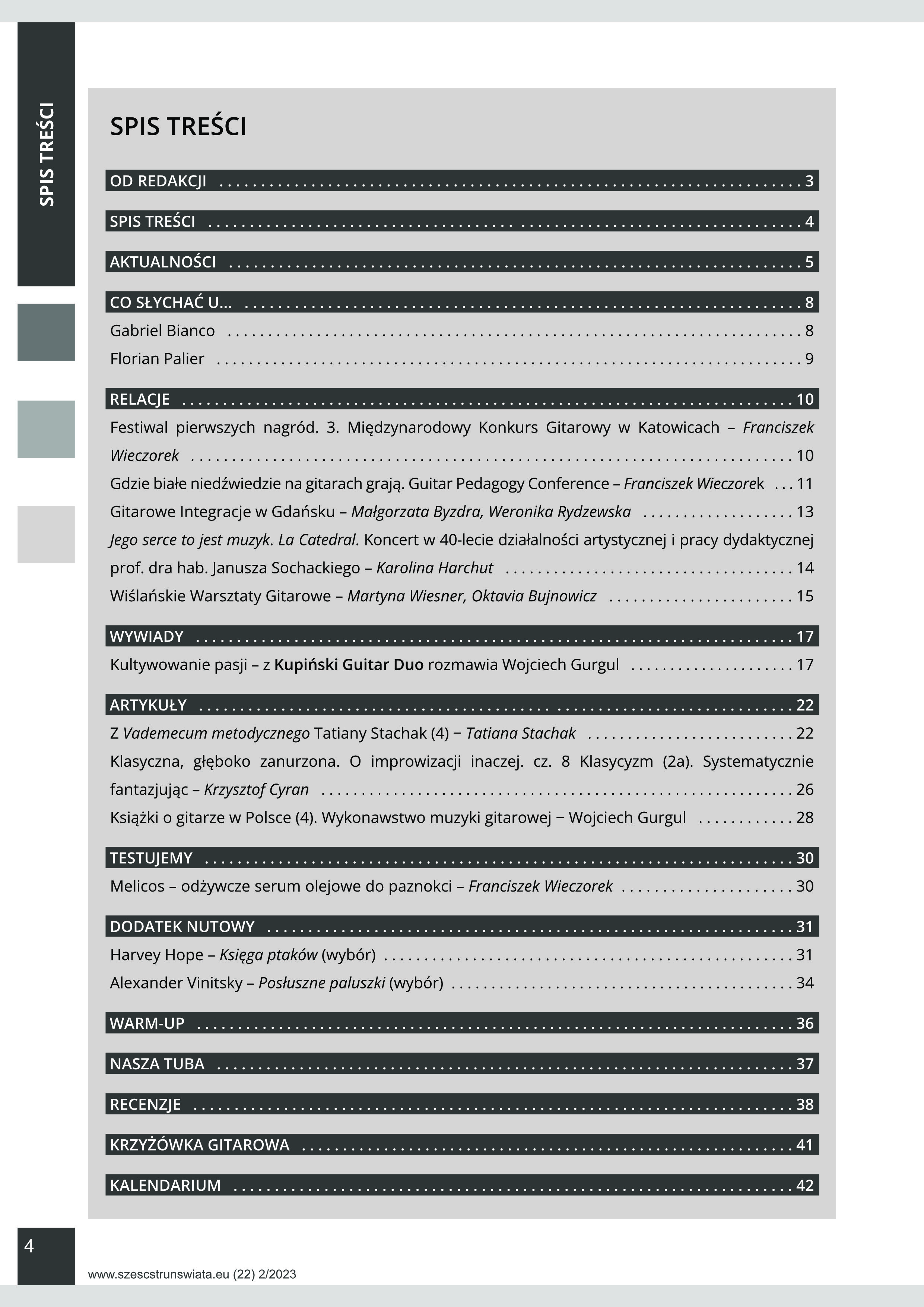 Magazyn (kwartalnik) gitarzystów klasycznych „Sześć Strun Świata” - wydawany od 2015 roku (z przerwą w latach 2018-2020) - poruszający zagadnienia muzyki gitarowej.
