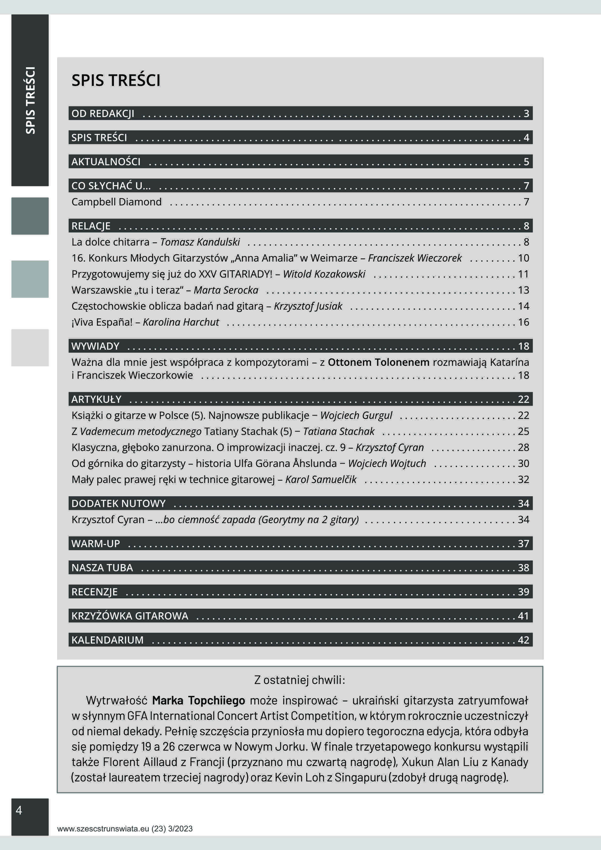 Magazyn (kwartalnik) gitarzystów klasycznych „Sześć Strun Świata” - wydawany od 2015 roku (z przerwą w latach 2018-2020) - poruszający zagadnienia muzyki gitarowej.