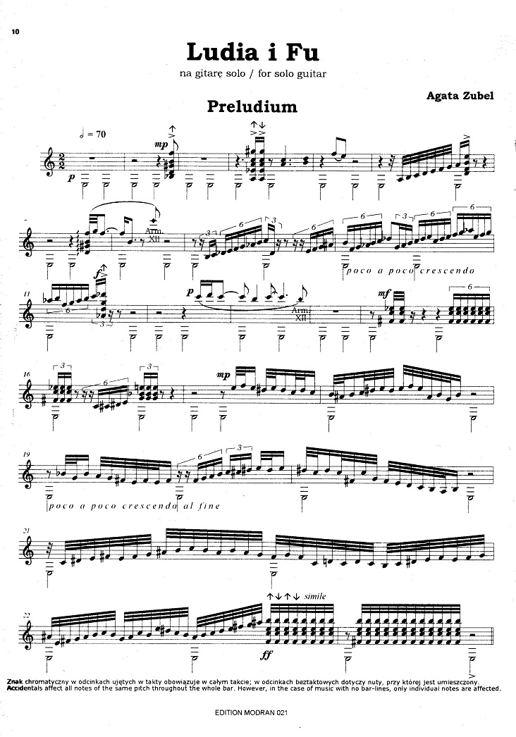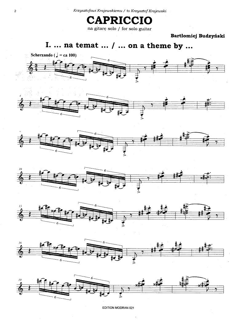 Owoc „IV Ogólnopolskiego Konkursu Kompozycji na Gitarę Klasyczną”. Publikacja zawiera: Bartłomiej Budzyński – Capriccio, Agata Zubel – Ludia i Fu. Praca ta to kontynuacja zeszytów EM 001 i EM 008, będąca kolejnym krokiem w rozwój polskiej współczesnej sztuki gitarowej. 16 stron.