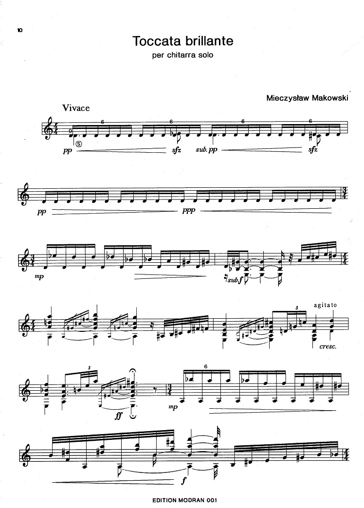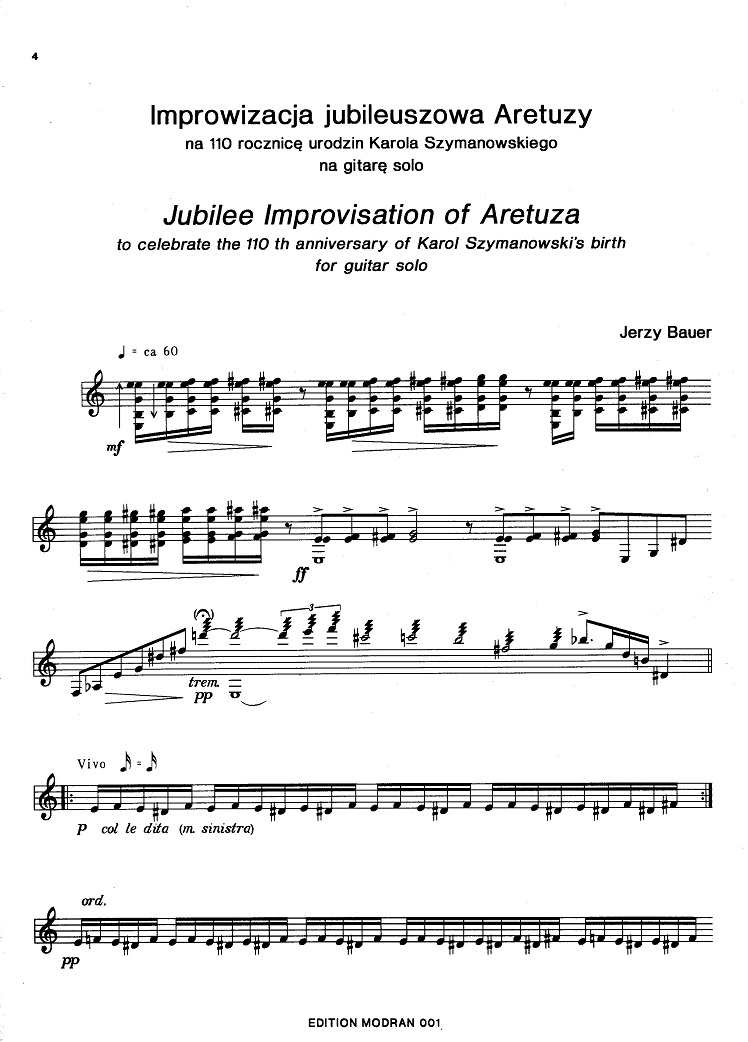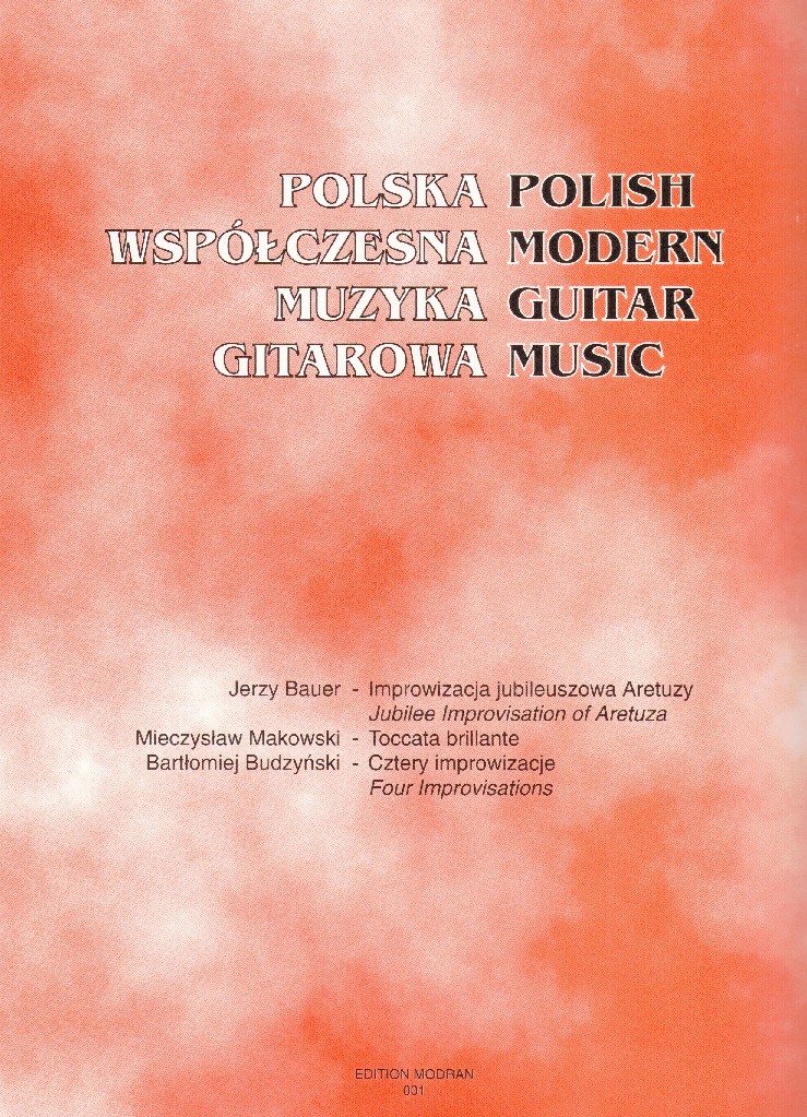 Pozycja ta jest owocem "I Ogólnopolskiego Konkursu Kompozycji na Gitarę Klasyczną - Tychy '93". Zawiera trzy spośród czterech nagrodzonych utworów: Jerzy Bauer - Improwizacja Jubileuszowa Aretuzy, Mieczysław Makowski - Toccata brillante, Bartłomiej Budzyński - Cztery improwizacje. Wydanie to wzbogaca skromną polską współczesną literaturę gitarową. Wydanie drugie poprawione. 20 stron.